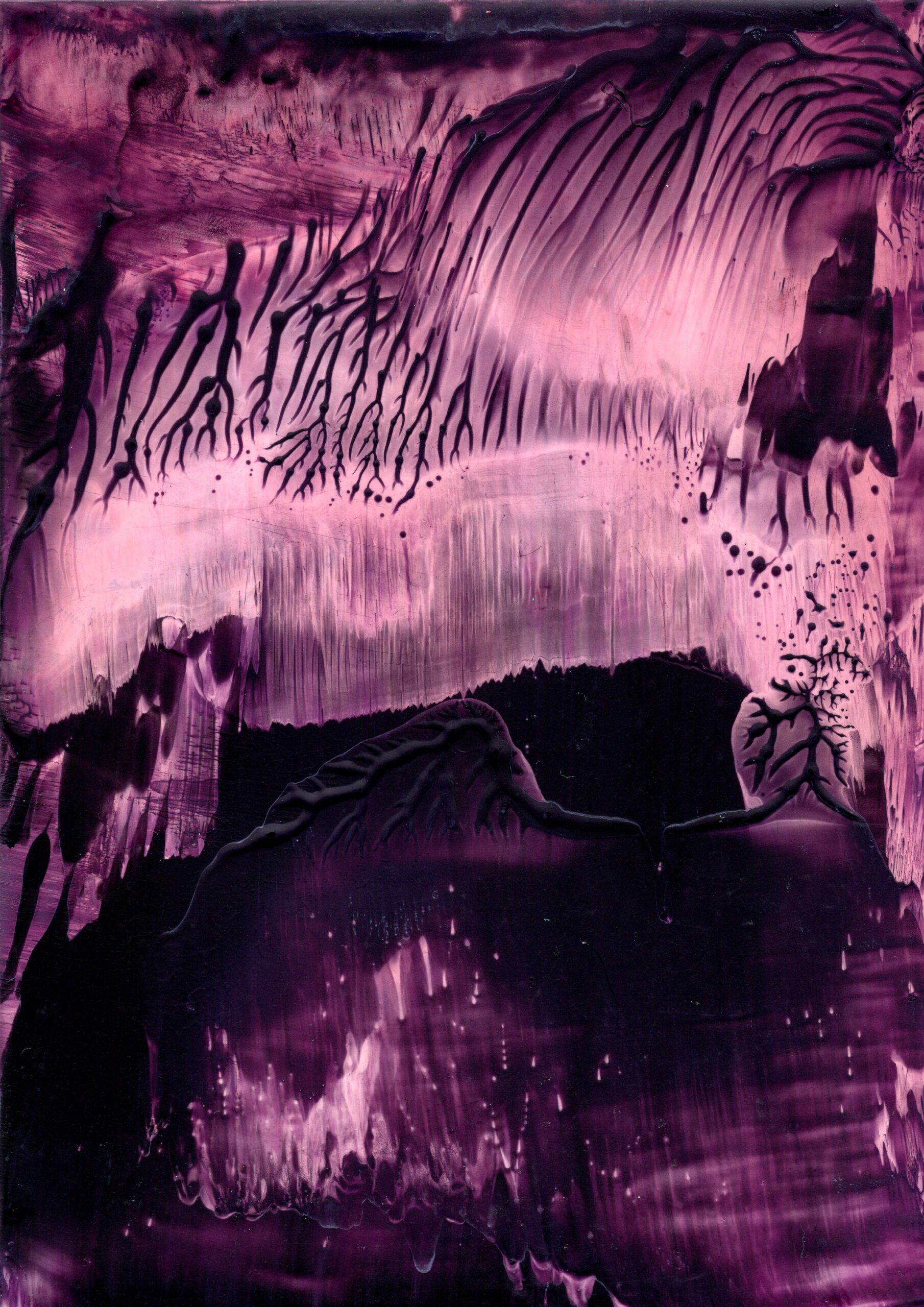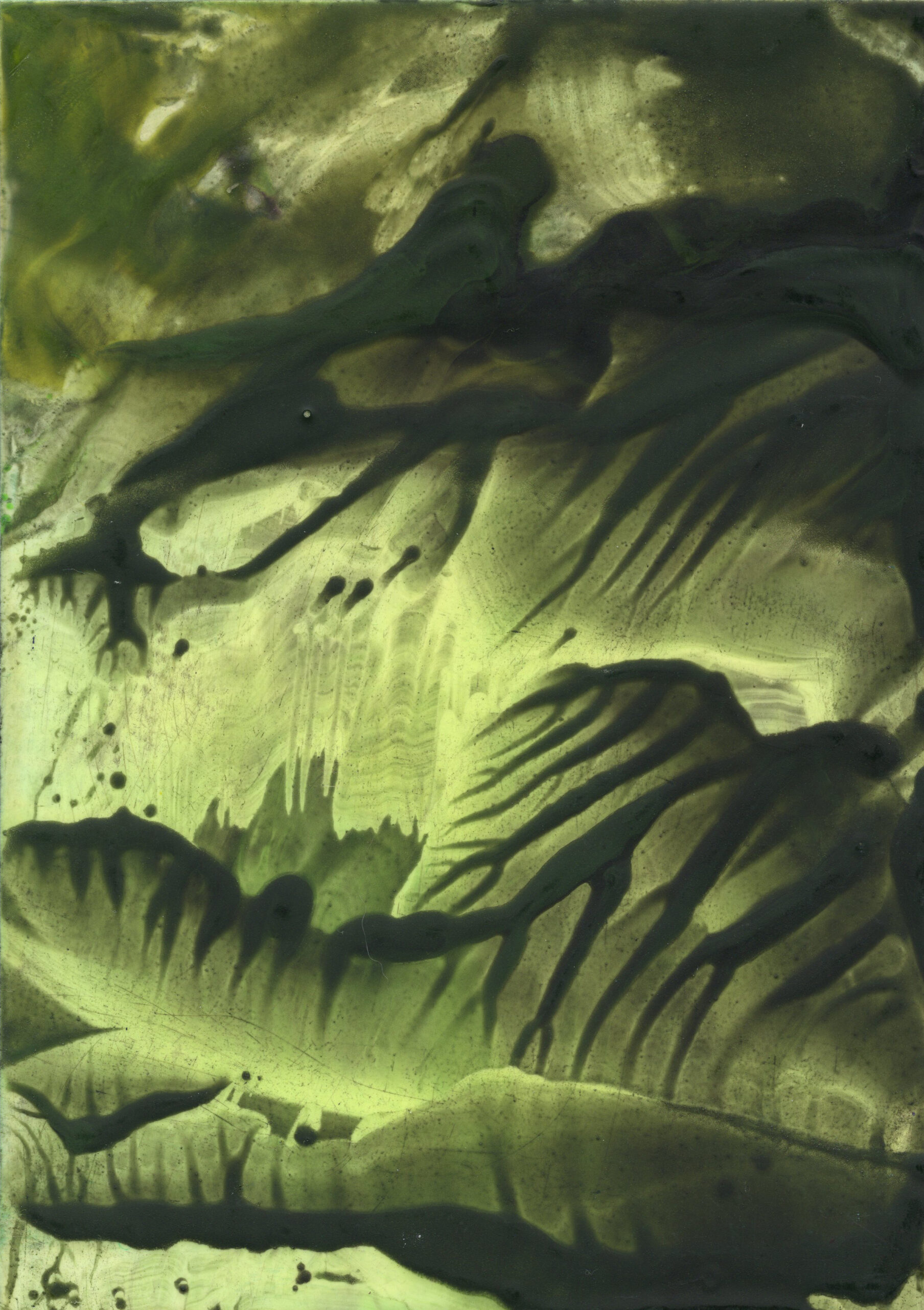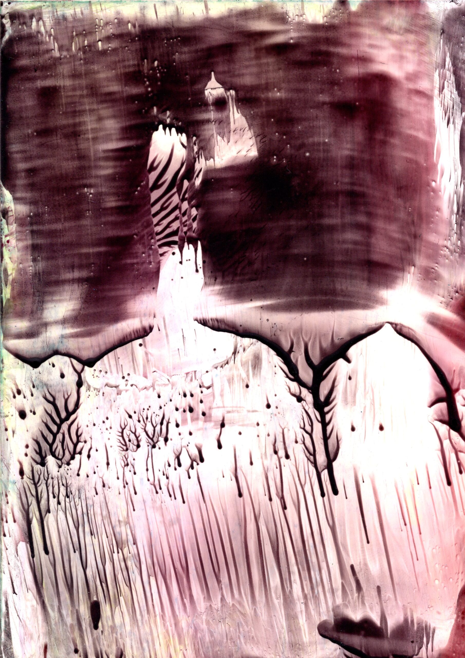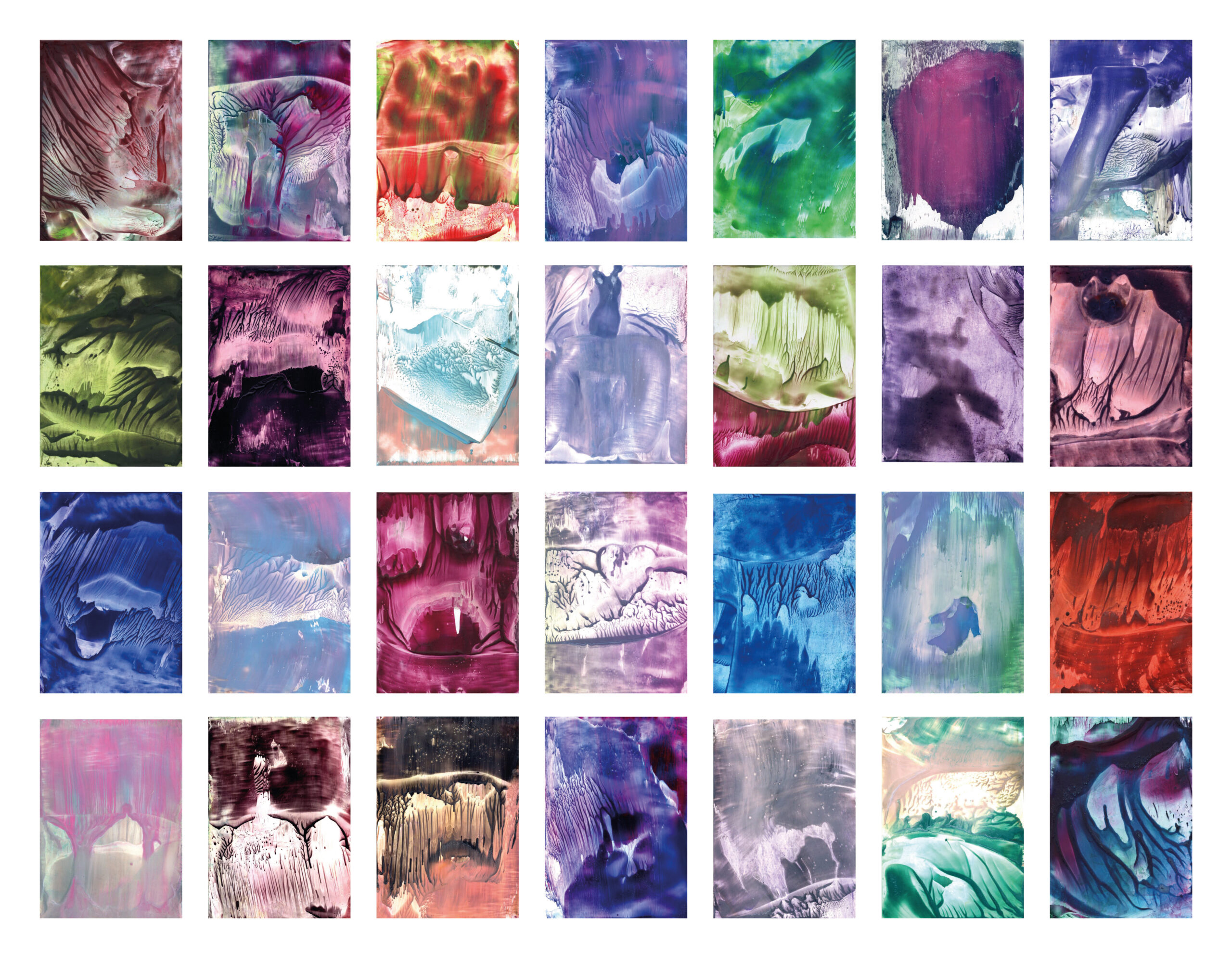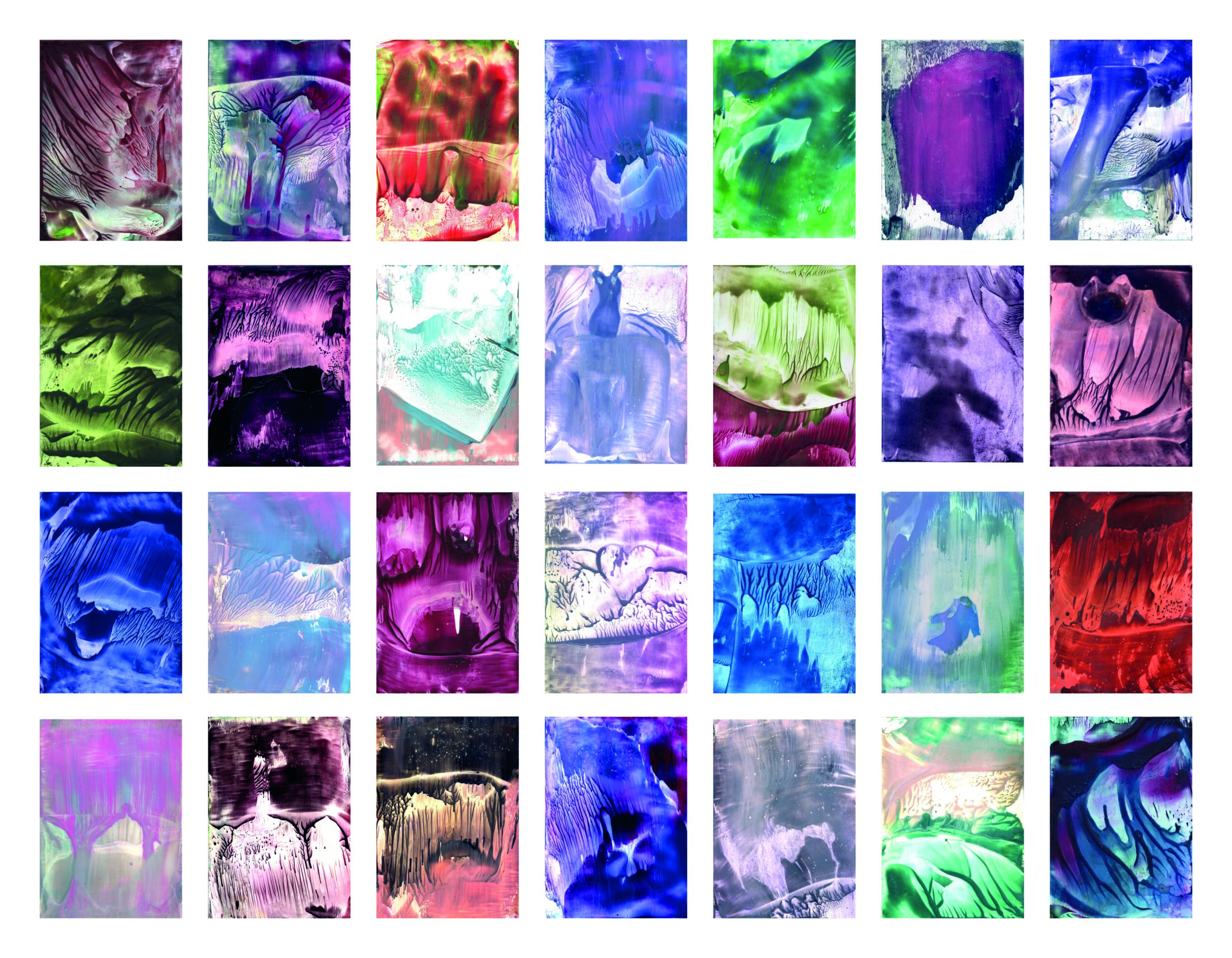A series of 28 paintings 100 x 70 cm • 2014-2020 In this series of paintings, nature appears as a living being, expressing its fantasies in visual forms. Viewers can see nature not only as a physical reality, but also as a metaphysical force - one that inspires and motivates to preserve its beauty. These paintings are characterized by a surreal harmony, blending familiar natural forms with bizarre elements. The shapes resemble waves, rocks, trees, or clouds, sometimes distorted or intertwined with colors that do not exist in nature. Stripes, blurs and multi-layered textures create a sense of movement that hints at the unpredictability of dreams. At the same time, individual details of the paintings (for example, chaotic or tense strokes) point at nature's "nightmares" caused by human activity - pollution, destruction of landscapes, or climate change. Medium: Artist's Quality Encaustic and Wax Crayons Surface: Encaustic Painting Cards