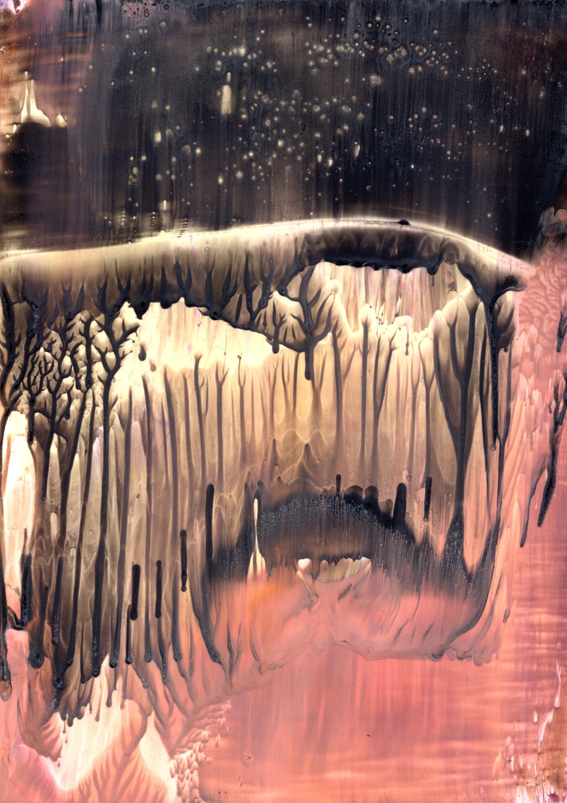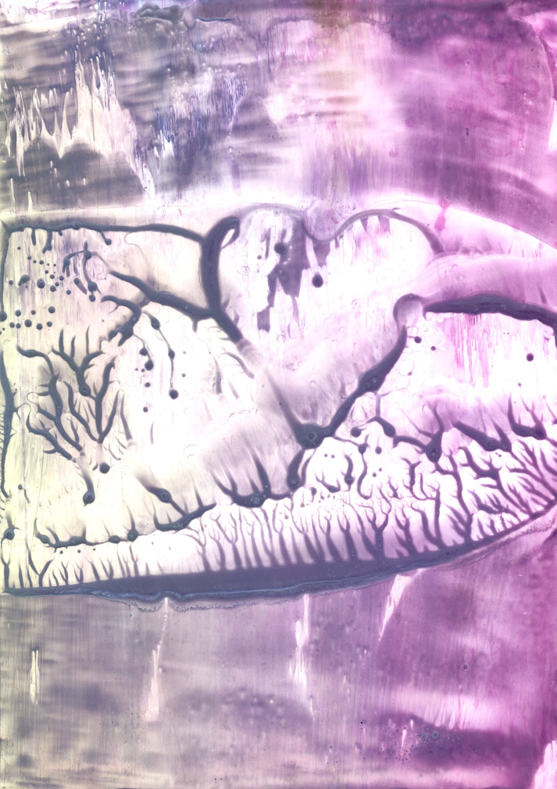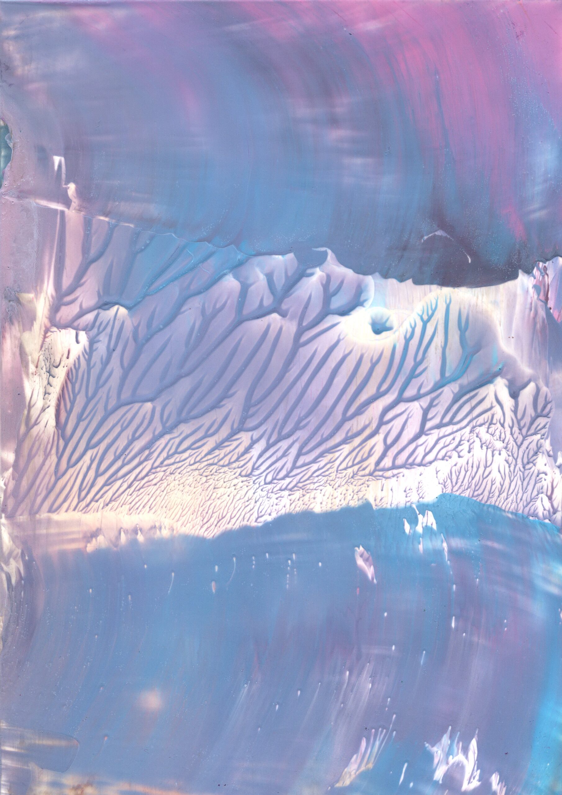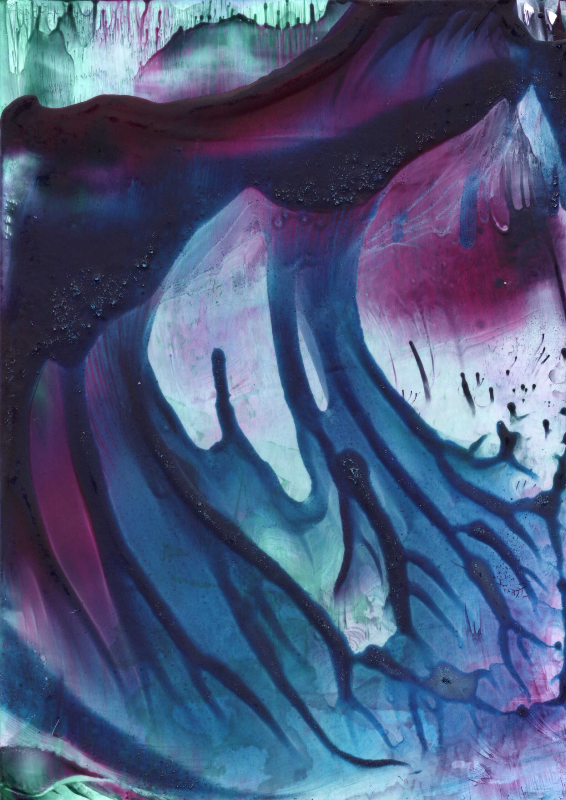 A series of 28 paintings 100 x 70 cm • 2014-2020 In this series of paintings, nature appears as a living being, expressing its fantasies in visual forms. Viewers can see nature not only as a physical reality, but also as a metaphysical force - one that inspires and motivates to preserve its beauty. These paintings are characterized by a surreal harmony, blending familiar natural forms with bizarre elements. The shapes resemble waves, rocks, trees, or clouds, sometimes distorted or intertwined with colors that do not exist in nature. Stripes, blurs and multi-layered textures create a sense of movement that hints at the unpredictability of dreams. At the same time, individual details of the paintings (for example, chaotic or tense strokes) point at nature's "nightmares" caused by human activity - pollution, destruction of landscapes, or climate change. Medium: Artist's Quality Encaustic and Wax Crayons Surface: Encaustic Painting Cards