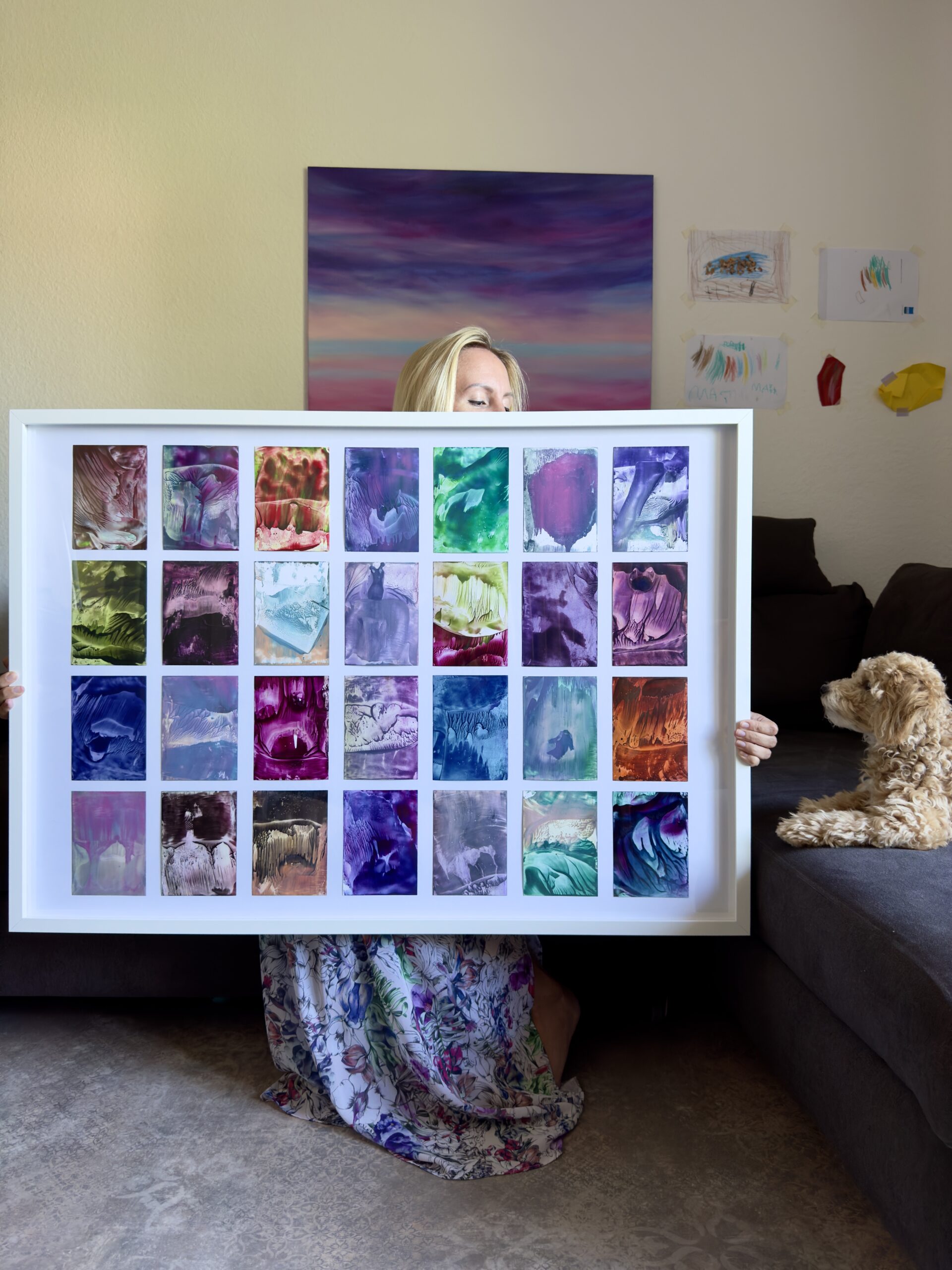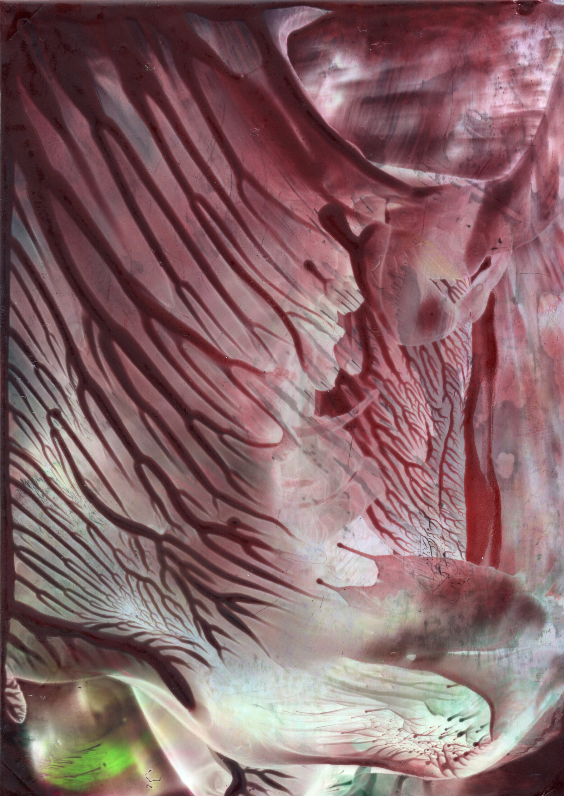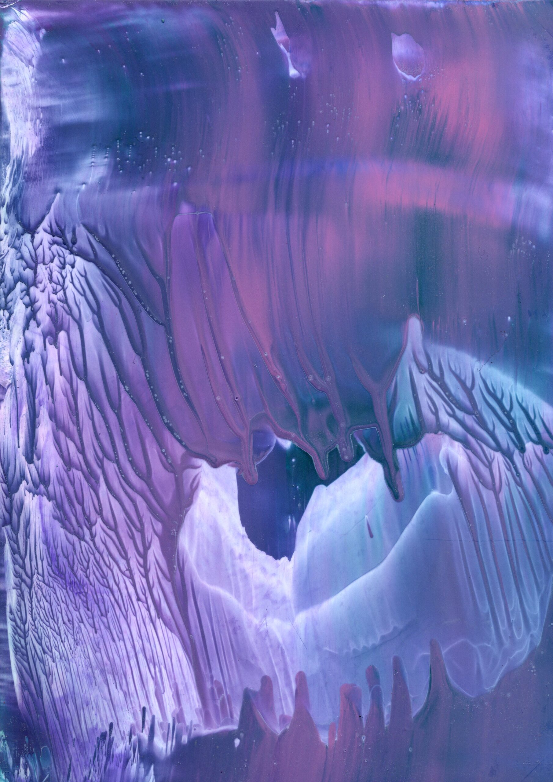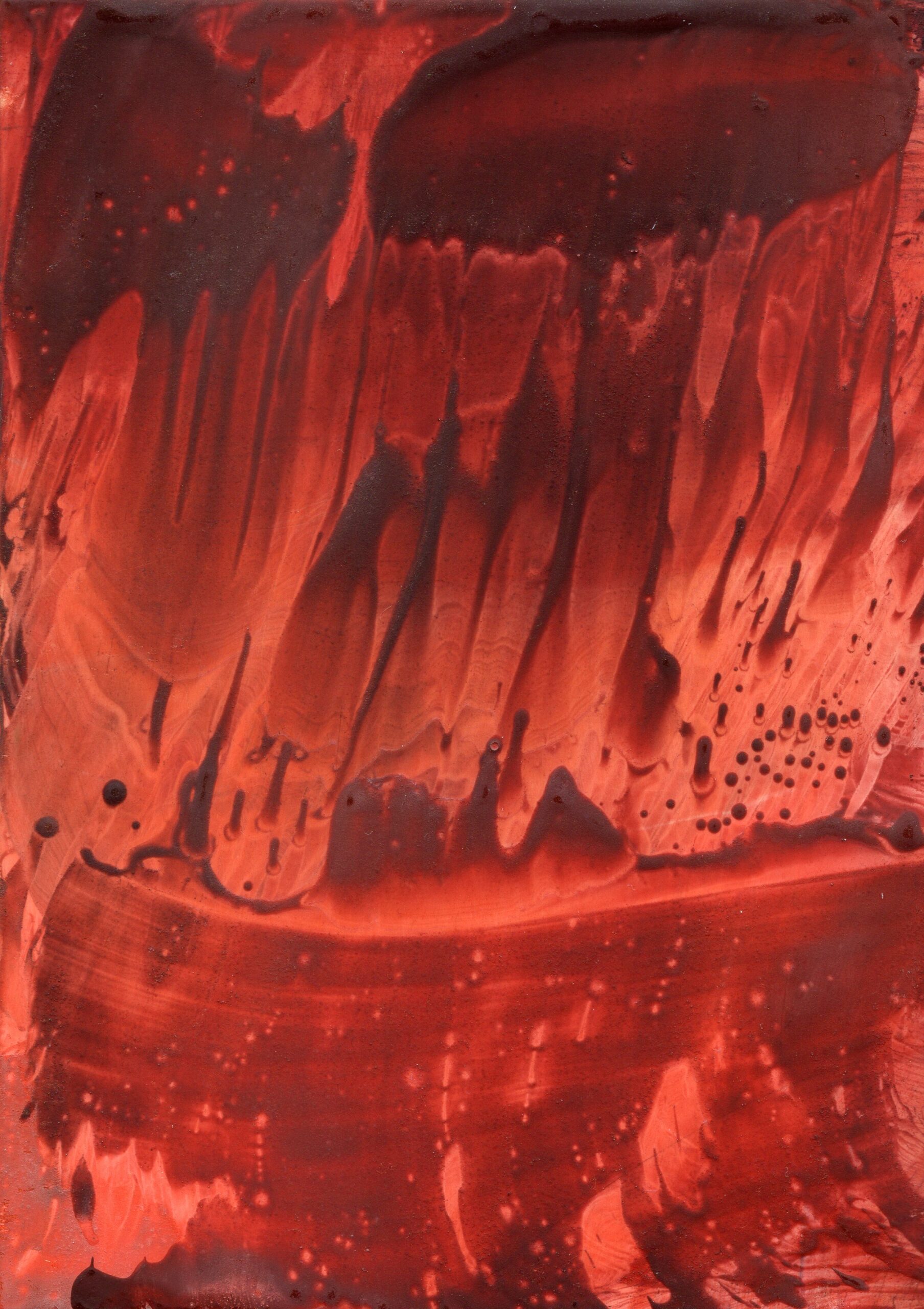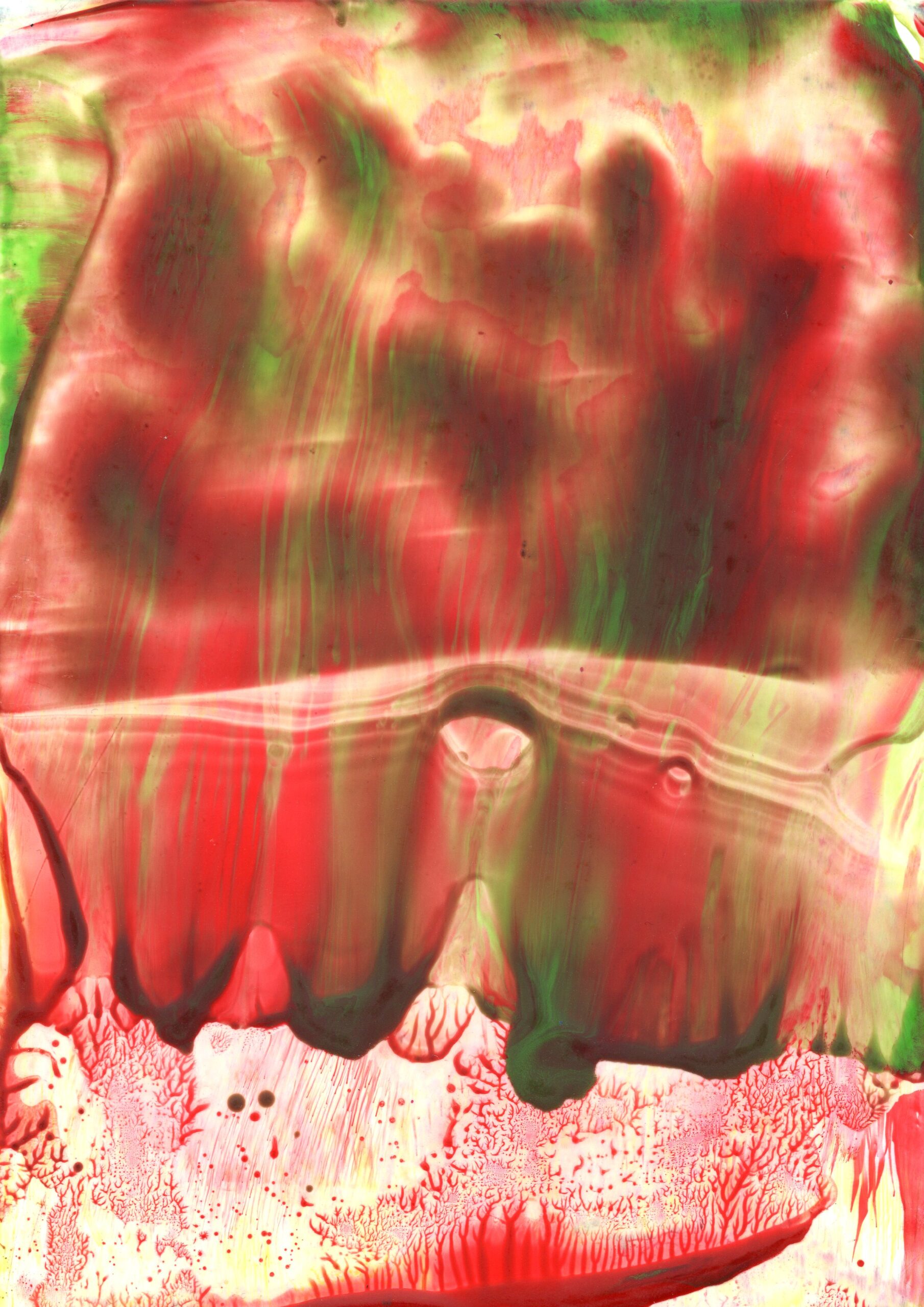 A series of 28 paintings 100 x 70 cm • 2014-2020 In this series of paintings, nature appears as a living being, expressing its fantasies in visual forms. Viewers can see nature not only as a physical reality, but also as a metaphysical force - one that inspires and motivates to preserve its beauty. These paintings are characterized by a surreal harmony, blending familiar natural forms with bizarre elements. The shapes resemble waves, rocks, trees, or clouds, sometimes distorted or intertwined with colors that do not exist in nature. Stripes, blurs and multi-layered textures create a sense of movement that hints at the unpredictability of dreams. At the same time, individual details of the paintings (for example, chaotic or tense strokes) point at nature's "nightmares" caused by human activity - pollution, destruction of landscapes, or climate change. Medium: Artist's Quality Encaustic and Wax Crayons Surface: Encaustic Painting Cards
